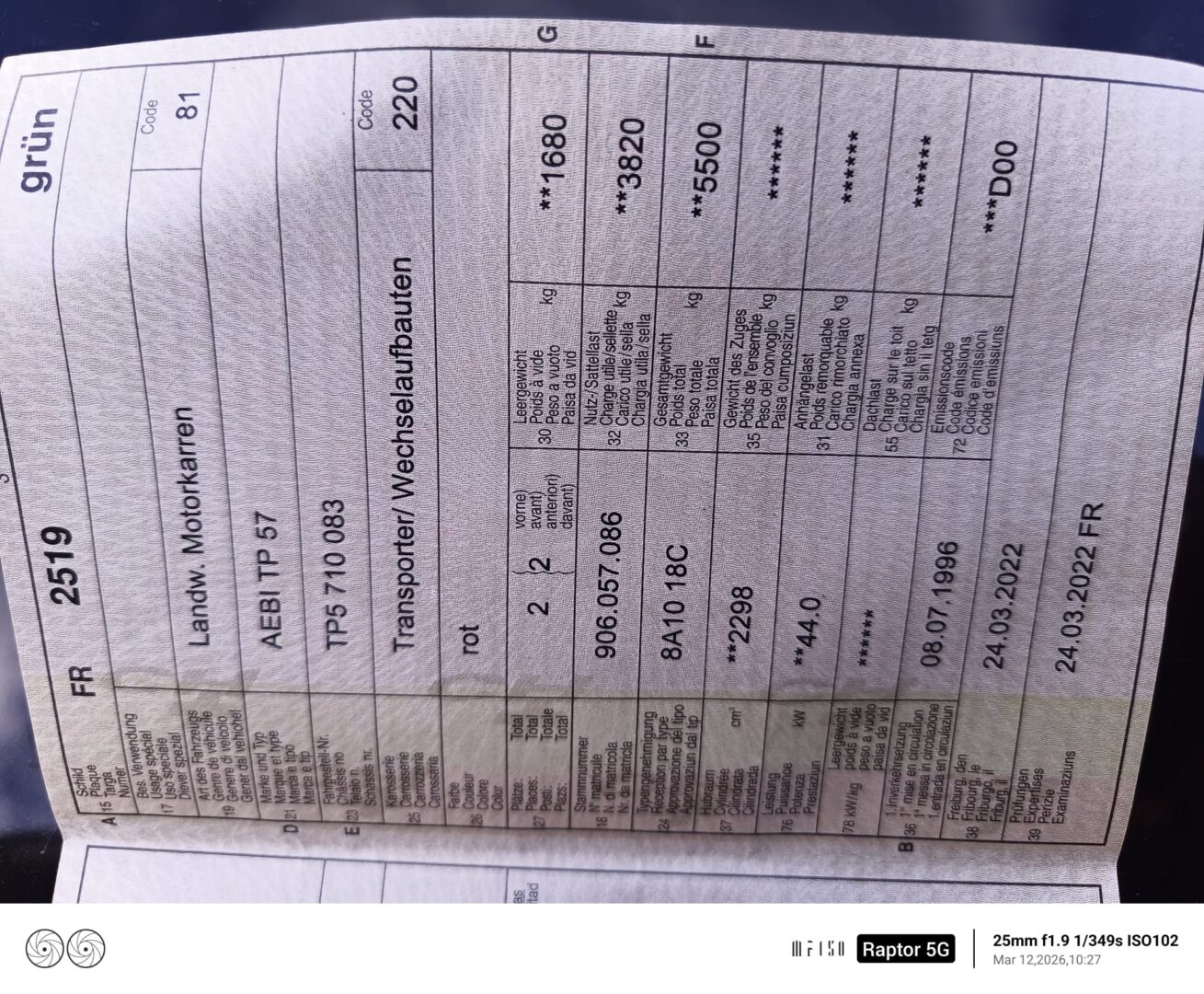 erste Inverkehrssetzung: 08.07.1996